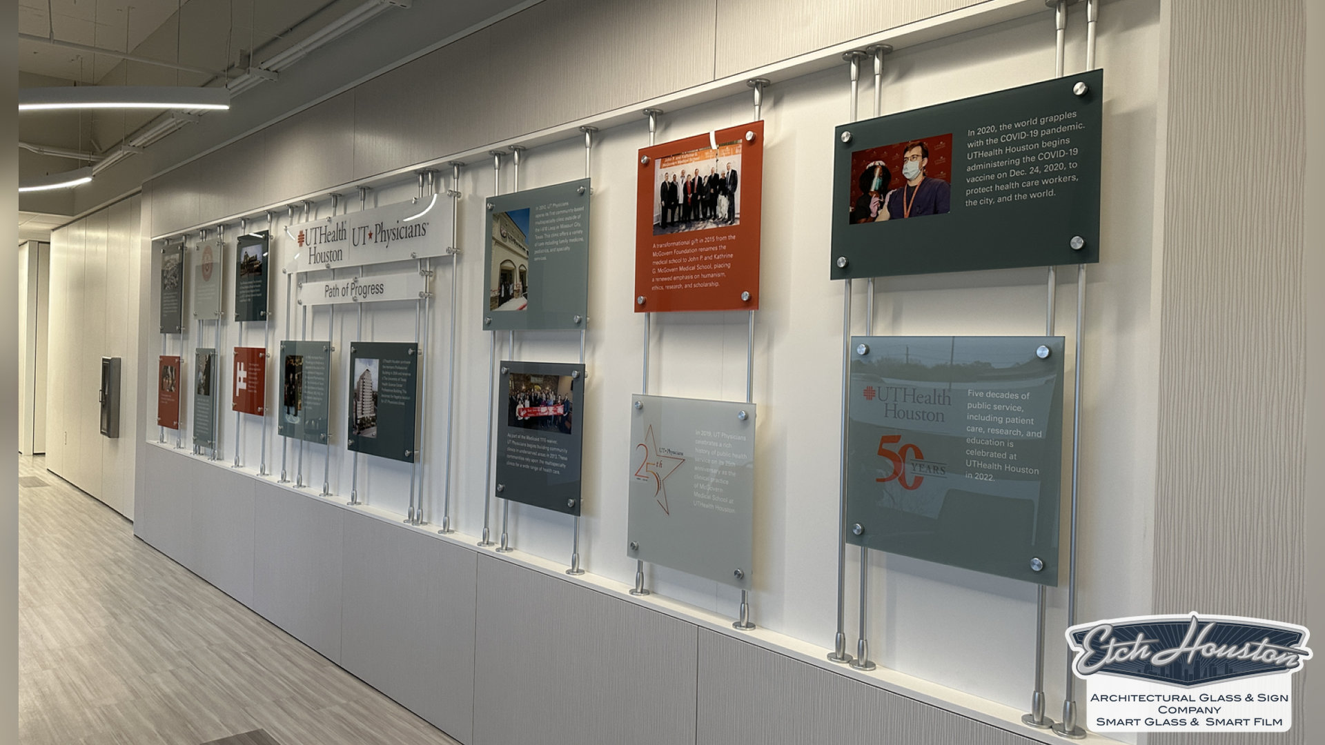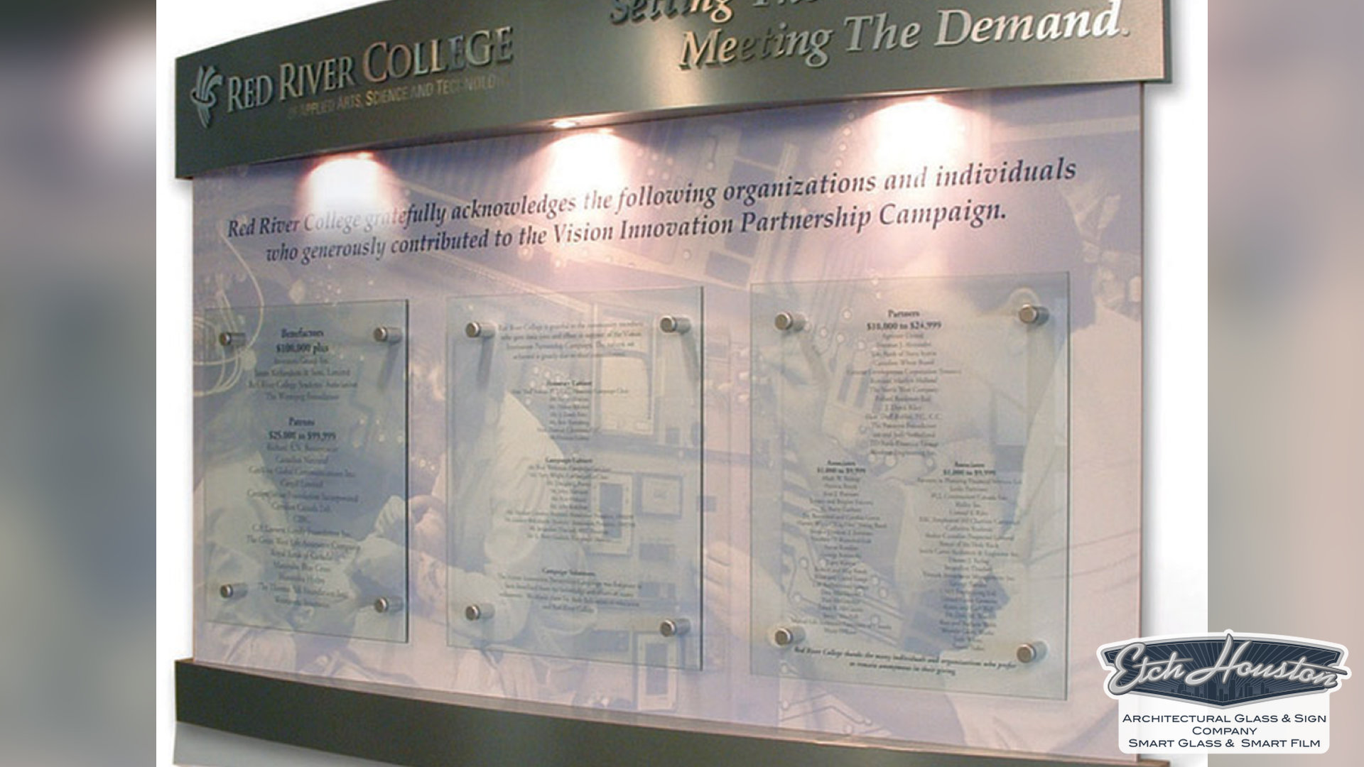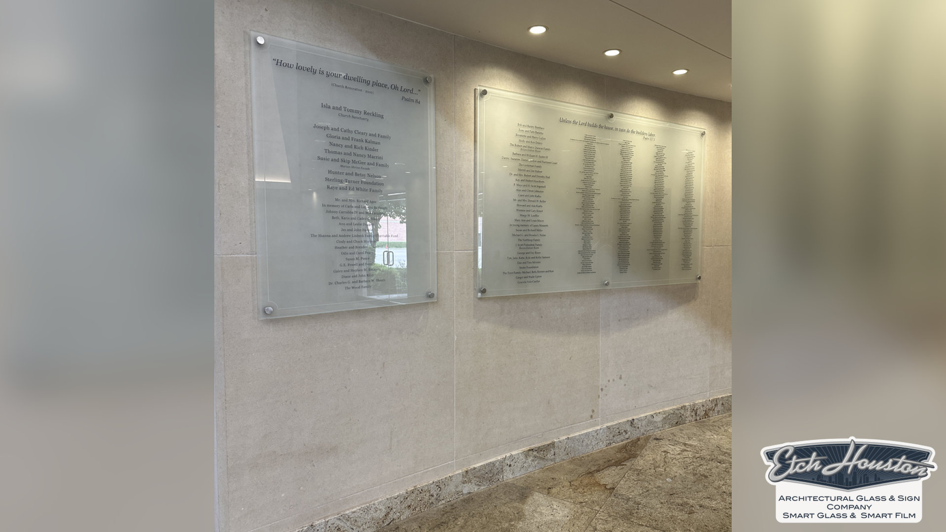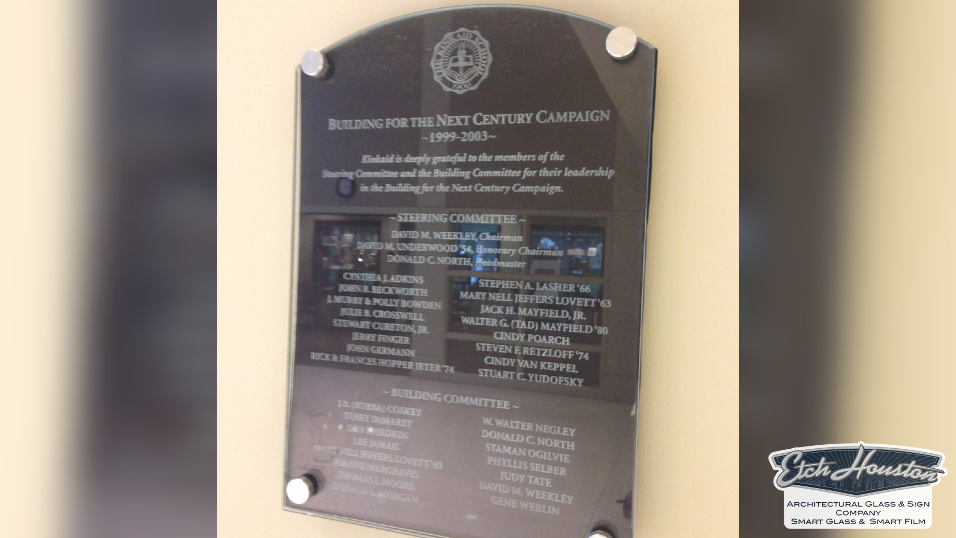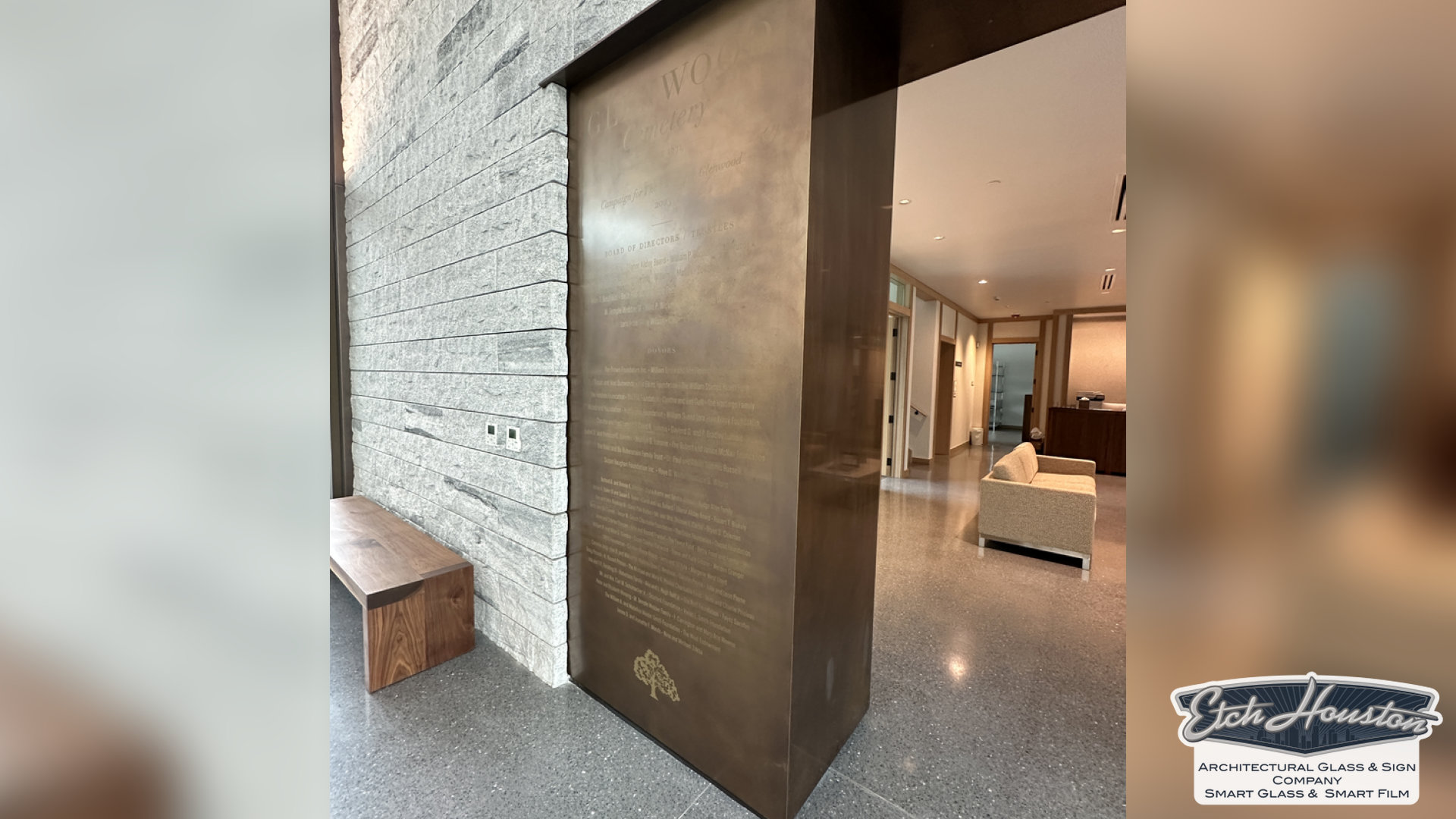 Our process is fully custom. We collaborate with you to design a wall that reflects your organization’s identity and integrates seamlessly with your space. Using premium materials—such as elegant metal and crystal-clear acrylic—we deliver a final piece that feels architectural, timeless, and truly worthy of the people it celebrates.